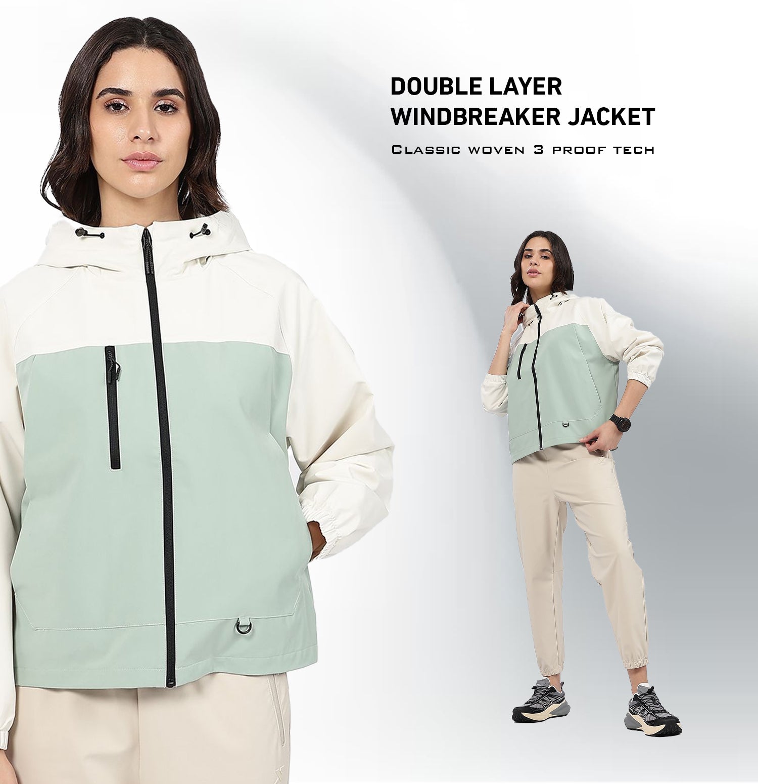Xtep Women’s Outdoor Training Double-Layer Windbreaker – Winter | Xtep-Shield 3-Proof Protection: